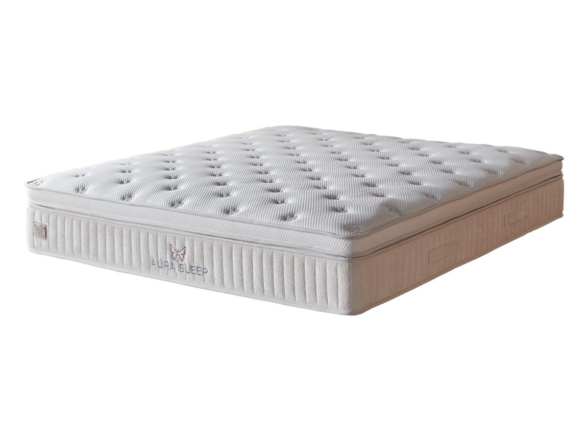 Madrac Aura osmišljen je za one koji traže optimalnu ravnotežu između udobnosti, funkcionalnosti i estetskog dojma. Zahvaljujući posebno razvijenoj pletenoj tkanini s visokom prozračnošću, madrac omogućuje bolje strujanje zraka tijekom noći, čime se smanjuje zadržavanje vlage i osigurava osjećaj suhoće. Njegova mekana i elastična struktura pruža prilagodljivu površinu za spavanje, što doprinosi regulaciji tjelesne temperature. Madrac se temelji na inovativnom Base Coil Pro Balance® opružnom sustavu, koji ravnomjerno raspoređuje tjelesnu težinu i pruža stabilnu potporu za cijelo tijelo.